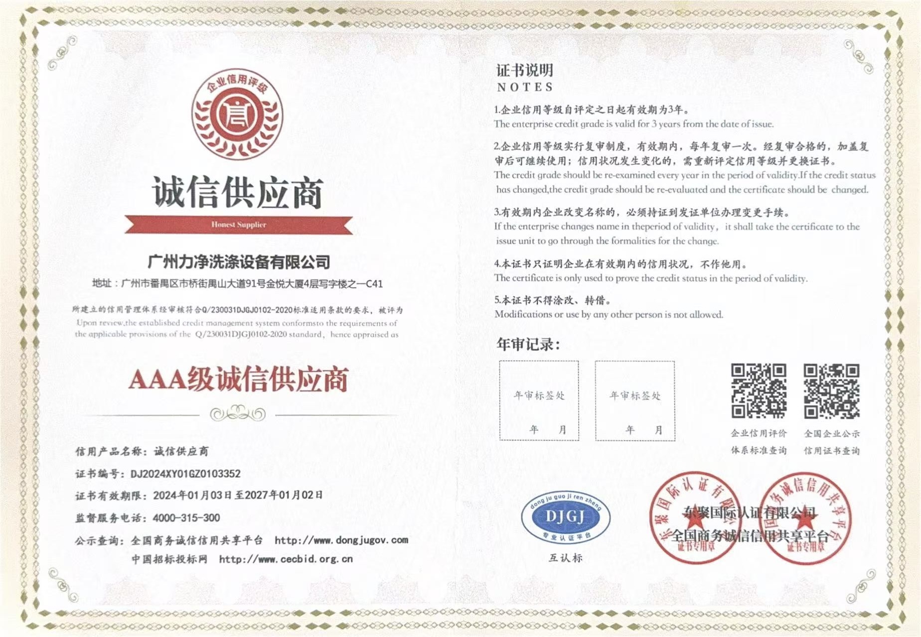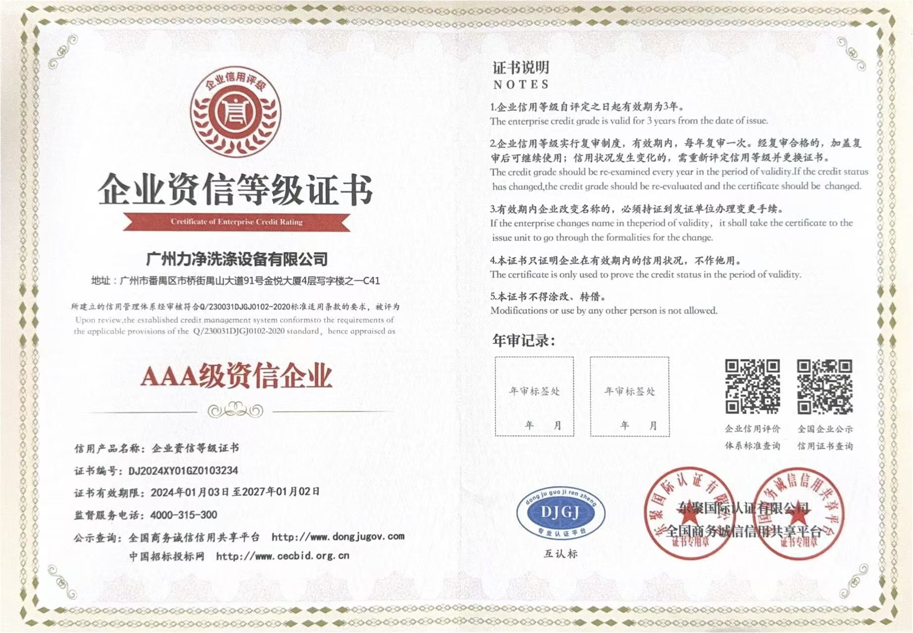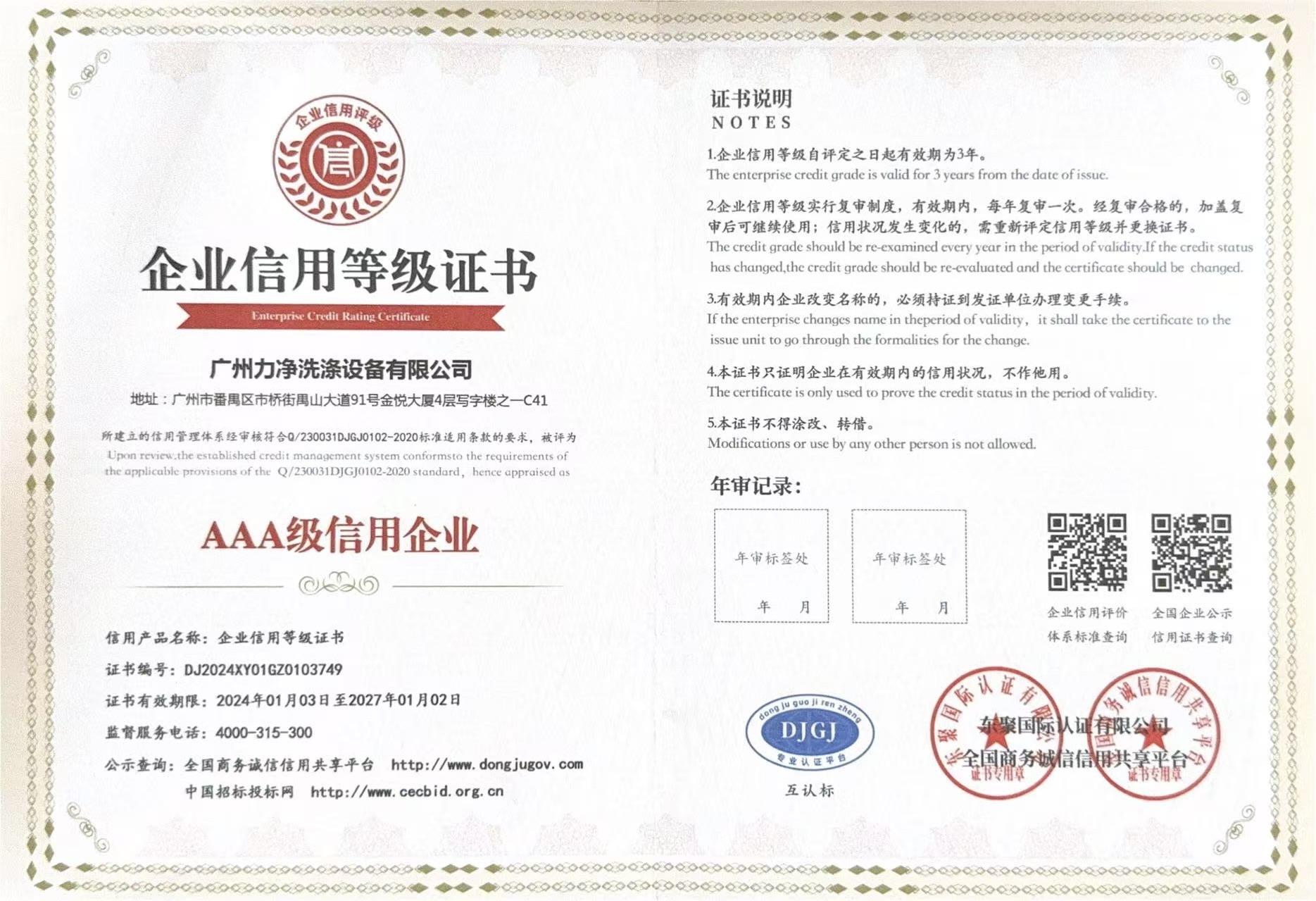 • AAA企业信用等级证书