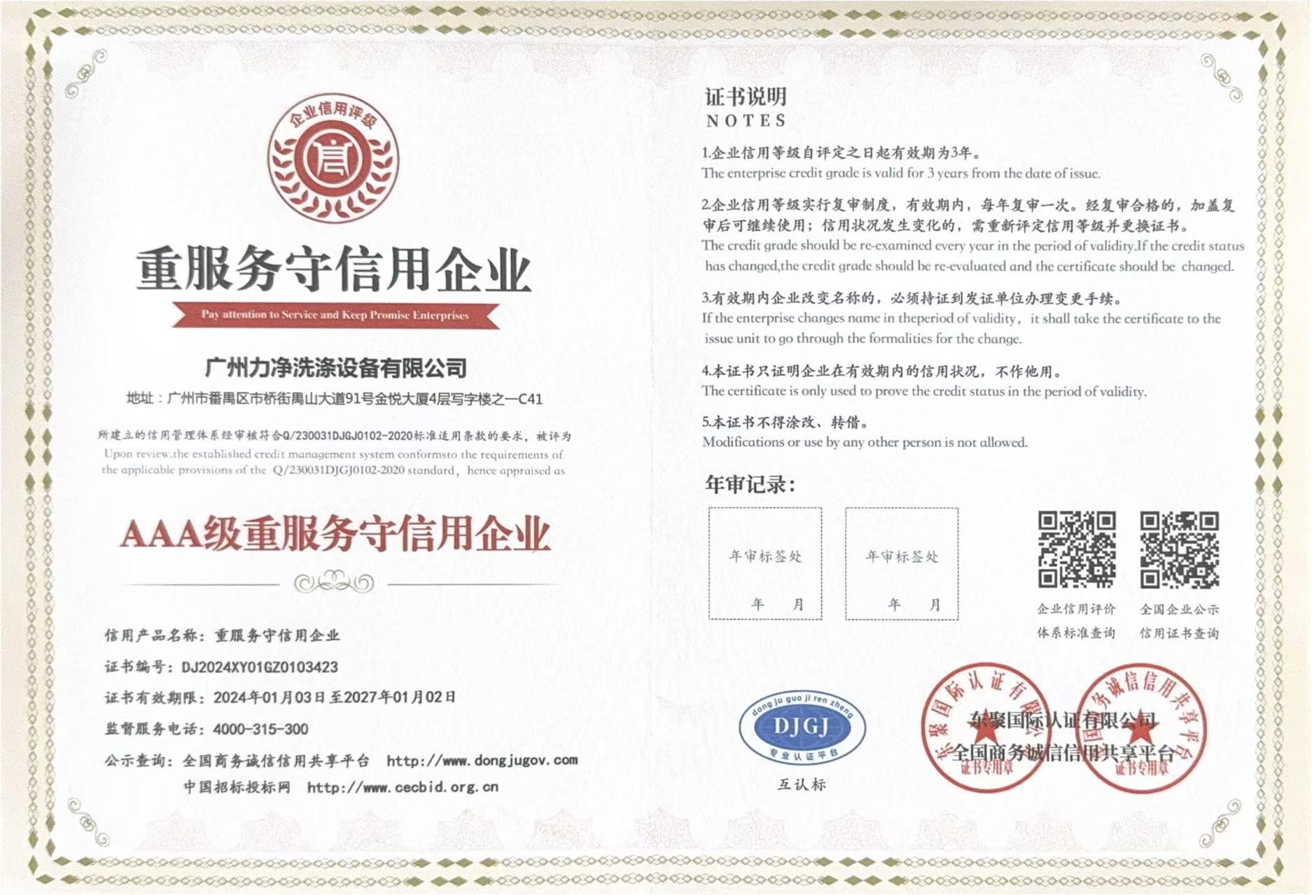 • AAA级重质量守信用单位